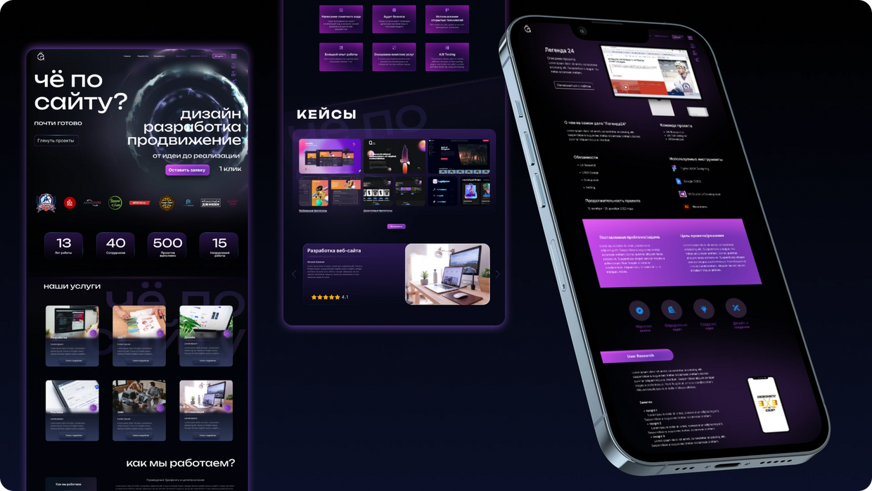This order came from a website development studio. It was exciting to work with such a customer, because it was immediately clear that the client knows what he wants, as he has often encountered work on website design. The idea of the project was to create a visually appealing in black and purple colors. In the end, the modern style seemed to me a good solution, with which the customer agreed, resulting in what you can see here.